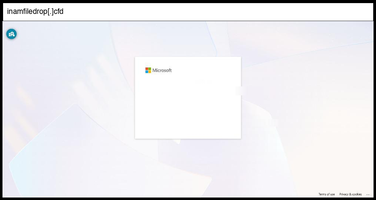 This phishing page implements credential capture through a standard HTML form POST to "/common/login" on the malicious domain inamfiledrop.cfd, while masquerading as a legitimate Microsoft Office 365 login page. The most significant TTPs observed include sophisticated brand impersonation using authentic Microsoft branding, CSS, and JavaScript resources loaded from legitimate Microsoft CDN endpoints (aadcdn.msauth.net), extensive configuration mimicking real Azure AD authentication flows with proper OAuth2 parameters and session handling, and the use of Cloudflare services for hosting and protection as evidenced by the Cloudflare beacon script.