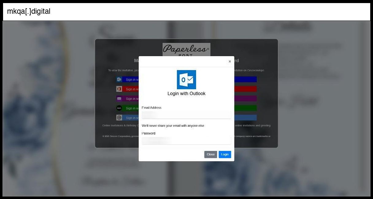 The infrastructure appears to be hosted on a suspicious domain (mkqa.digital) with Cloudflare protection based on the beacon scripts, and the attack demonstrates moderate to advanced sophistication through its realistic multi-modal interface, comprehensive 2FA bypass attempt, JavaScript-driven stage management, and professional appearance that closely mimics legitimate services.