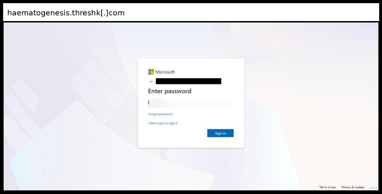 Notable evasion techniques include extensive CSS class name obfuscation with randomized identifiers, anti-bot honeypot fields, disabled right-click and text selection, plus bot detection modules that likely validate credentials in real-time against legitimate Microsoft services. The infrastructure appears to use a compromised or malicious server (haematogenesis.threshk.com) with a sophisticated phishing kit that includes base64-encoded configuration data and maintains session state across the multi-step authentication process, representing an advanced-level operation that closely replicates legitimate Microsoft login experiences.