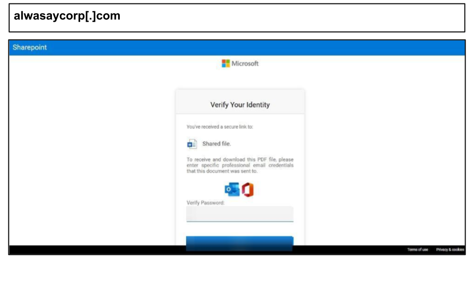 This phishing page uses a SharePoint/O365 doc-share lure: