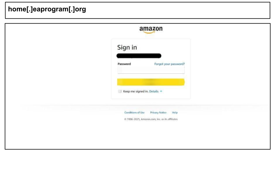 The same period also saw phishing campaigns targeting e-commerce accounts on corporate employees' work devices. On October 19, another Kentucky employee clicked the link in the Amazon phishing attack below.
